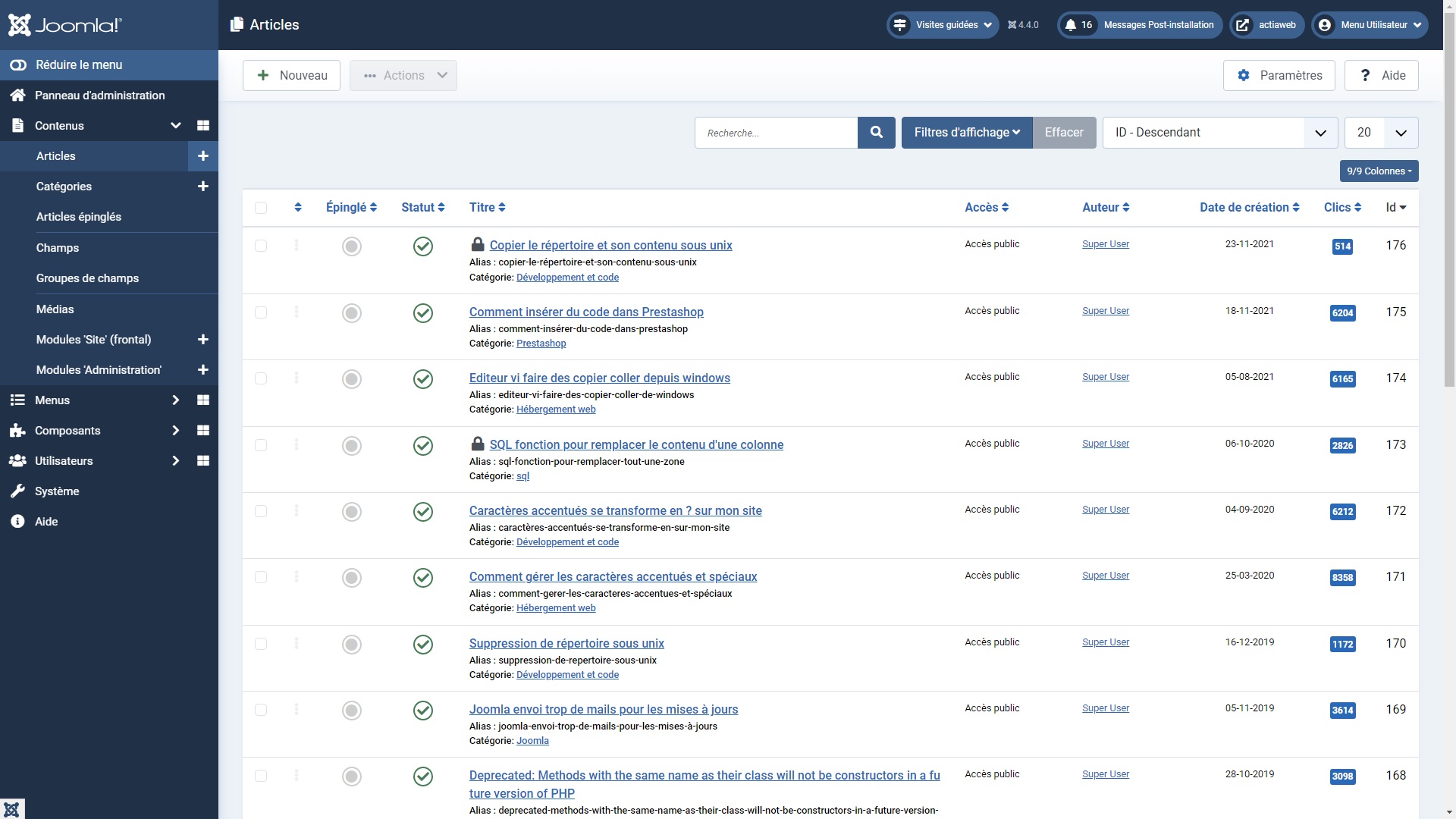 Afficher le nombre de clics dans joomla 4 et 5 dans l'administration
